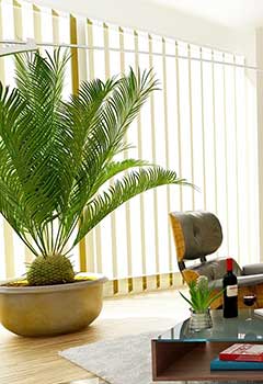 To cover window walls or glass doors, you’ll want to consider vertical blinds. These vertical window treatments offer an excellent covering solution for large frames.